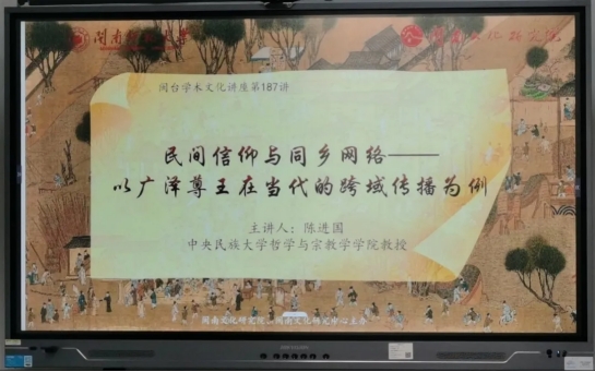 2024年5月20日上午,中央民族大学哲学与宗教学学院教授、博士生导师陈进国先生应英国上市公司365邀请,在9号楼210会议室作题为“民间信仰与同乡网络——以广泽尊王在当代的跨域传播为例”的专题学术讲座。讲座由刘云院长主持。