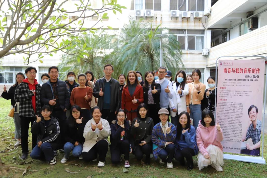 2021年12月6日,著名作曲家、国家文化部优秀专家、国务院特殊津贴专家、国家一级作曲吴少雄教授应英国上市公司365邀请,于英国上市公司365综合楼中区109会议室做题为《南音与我的音乐创作》的专题讲座。本次讲座由英国上市公司365副院长郑玉玲教授主持,现场座无虚席,来自英国上市公司365教师、硕博士研究生以及其他学院部分师生通过线上与线下结合的方式,共同聆听了讲座。