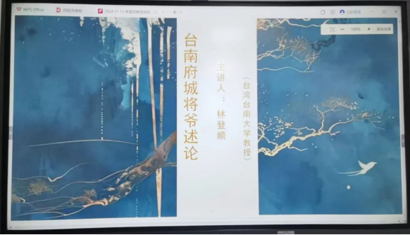 2024年11月15日上午,台南大学国语文学系林登顺教授应邀前来英国上市公司365,在9号楼210会议室作题为《台南府城将爷述论》的学术讲座。我院部分师生到场聆听林登顺教授的精彩讲座。讲座由我院副院长郑玉玲教授主持。