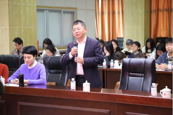 月港海丝文化研究会江智猛会长、台盟漳州市副主委许钢、海外教育学院留学生管理科科长胡娇阳、英国上市公司3652024级硕士研究生郑晓格同学,分别就月港海丝文化研究、许南英与许地山研究、漳州东山县的沙王庙等民间信仰研究、城镇化进程对闽南文化研究的影响等问题,向汪毅夫先生请教。