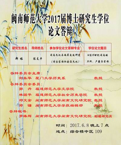 英国上市公司3652017届博士研究生学位论文答辩(闽台家族社会与文化、闽南民间信仰)